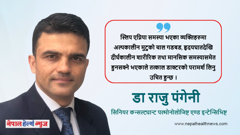 स्लीप एप्निया भए–नभएको पत्ता लगाउन निद्रासम्बन्धि जाँच गर्नुपर्ने बताउनुहुन्छ डा.राजु पंगेनी ।