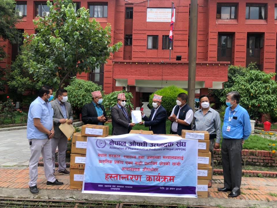 नेपाल औषधि उत्पादक संघद्धारा सरकारलाई ४० लाख बराबरको औषधि हस्तान्तरण