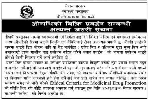 औषधि बिक्रीमा बढ्दो विकृतिः प्रलोभन देखाएर औषधि बेच्नेलाई नछाड्ने विभागको कडा चेतावनी