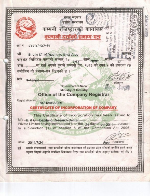 नेपाल मेडिकल काउन्सिलले बि.सं २०७३ मङ्सिर १७ गते एमबिबिएस कार्यक्रम सञ्चालन सम्बन्धी ‘इन्पेक्सन’ गरेको थियो । ‘इन्पेक्सन’ टोलीले तत्कालीन सयममा एमबिबिएस कार्यक्रम सञ्चालन सम्बन्धि सुक्ष्म अध्ययन गर्दा सो कार्यक्रम सञ्चालन गर्न पूर्वाधार पूरा भएको प्रतिवेदन दिइएको बताइएको छ । ‘यसैका आधारमा हामीले काठमाडौँ विश्वविद्यालय समक्ष विसं २०७३ फागुन १५ गते सम्बन्धनका लागि निवेदन दिएका हौँ । विश्वविद्यालयको हालै बसेको सिनेट बैठकले सम्बन्धनका लागि प्रक्रिया अगाडि बढाउने निर्णय गरेको सुनेको छु । बि एण्ड सि ले सम्बन्धन पाउनेमा म ढुक्क छु ।’ —कार्यकारी निर्देशक प्रसाईले भन्नुभयो ।