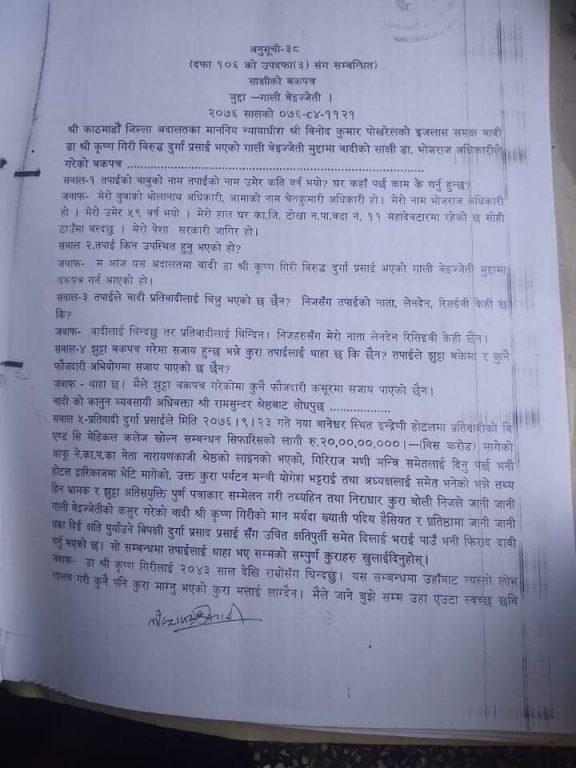 अनुगमन टोलीमा रहनुभएका डा. अधिकारी बिएण्डसी मेडिकल कलेजका सञ्चालक दुर्गा प्रसाईं र आयोग उपाध्यक्ष डा.गिरीबीचको गालीबेइज्जती मुद्दामा गिरी पक्षबाट साक्षी बसेका गिरी पक्षधर व्यक्ति भएकाले उहाँले बी एण्ड सीलाई राम्रो दृष्टिले हेर्ने कुरै भएन ।