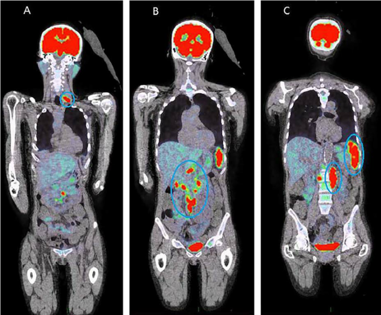 उपकरणद्वारा क्यान्सर रोगको पहिचान गर्न, बिरामीको अवस्थाबारे जानकारी लिन मद्दत पुग्छ । यसै गरी यस रोगमा प्रयोग भएको औषधि शरीरमा प्रभावकारी भए नभएको तथा शरीरमा क्यान्सरको कण भए नभएको पत्ता लगाउने, तथा मुटु रोग तथा विभिन्न खाले दिमागको रोगको अवस्था जान्न पनि सघाउ पुर्याउने समेत उपकरणले गर्ने गर्दछ । बिरामीमा कुन तहको क्यान्सर भएको छ र त्यो कुन अवस्थामा छ भनेर जाँच गर्न यस पेट सिटीस्क्यानको प्रयोग गरिन्छ ।