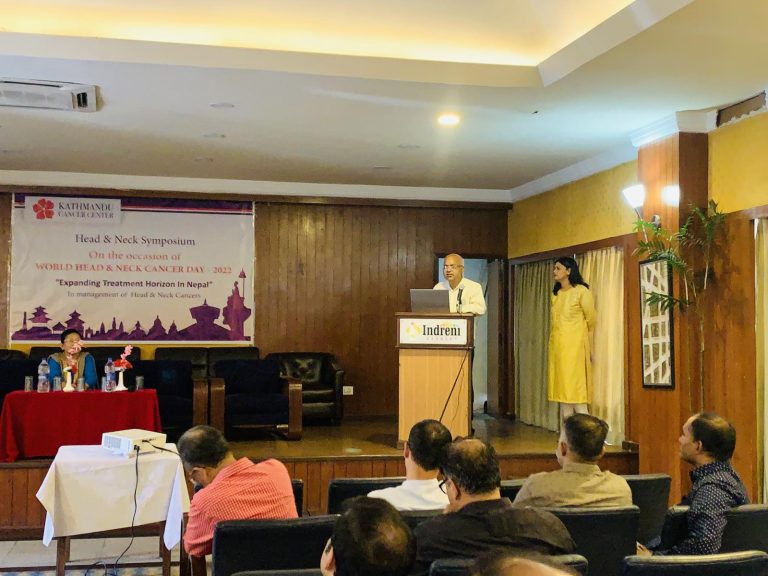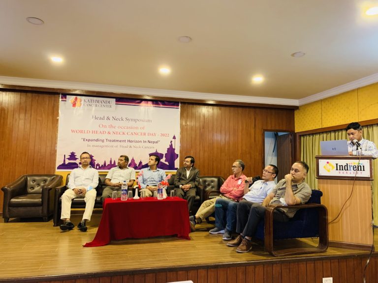 भक्तपुरको ताथलीस्थित काठमाडौं क्यान्सर केयर सेन्टर र क्यान्सर सपोर्ट एण्ड अवेरनेस नेपालद्धारा काठमाडौंमा आयोजित अन्तर्राष्ट्रिय हेड एण्ड नेक क्यान्सर दिवस २०२२ का अवसरमा आयोजित गोष्ठीका वक्ताहरुले मुख र घाँटीको क्यान्सरप्रति सचेत रहन आग्रह गर्नुभएको हो ।