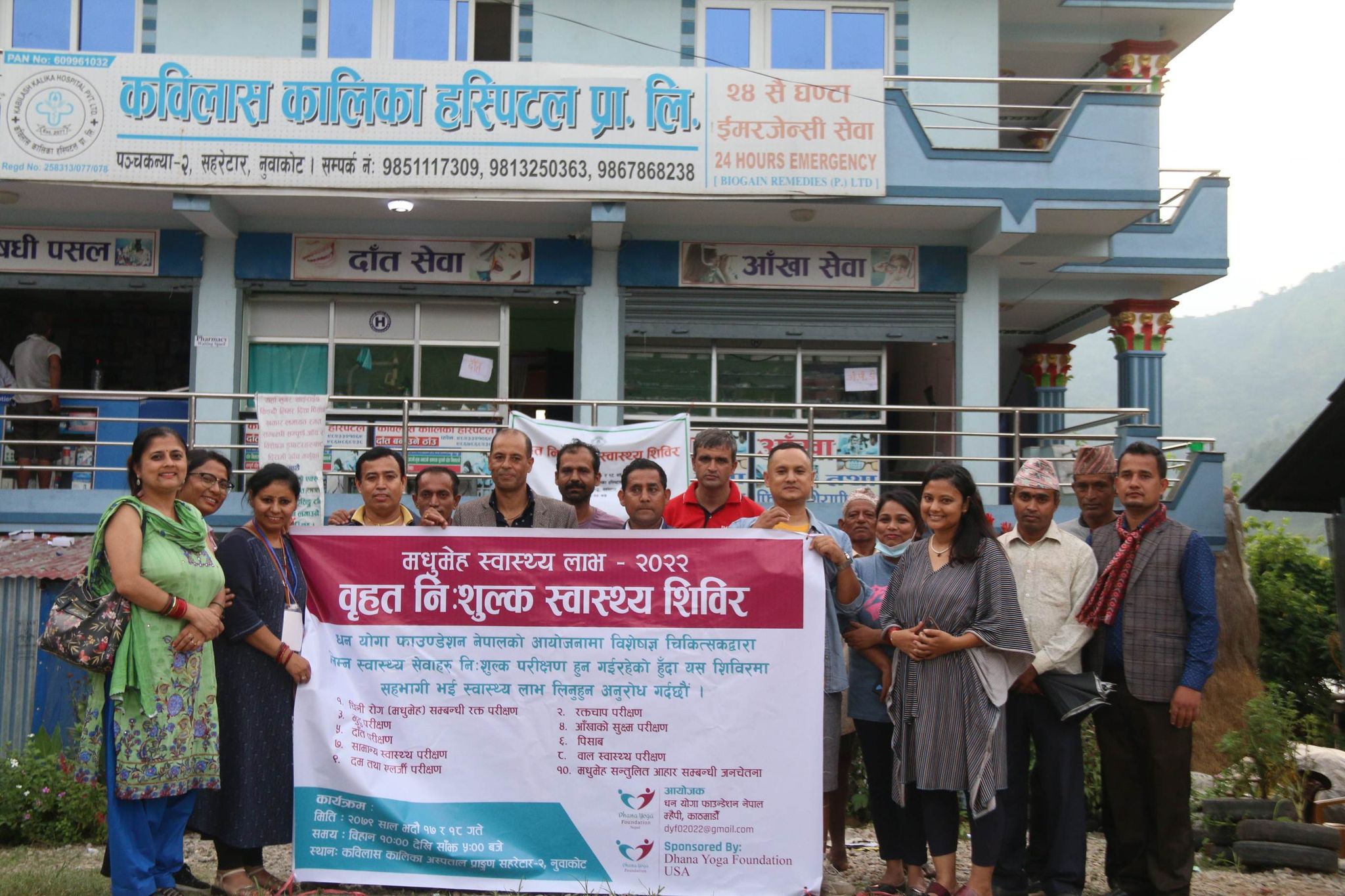 जनस्वास्थ्य सरोकार, नुवाकोट । मधुमेहका बिरामी बढिरहेको वर्तमान अवस्थामा काठमाडौंको धनयोगा फाउन्डेसन नेपालले नुवाकोटमा मधुमेहसम्बन्धि दुई दिने वृहत निःशुल्क स्वास्थ्य शिविर तथा जनचेतना कार्यक्रम सम्पन्न गरेको छ ।