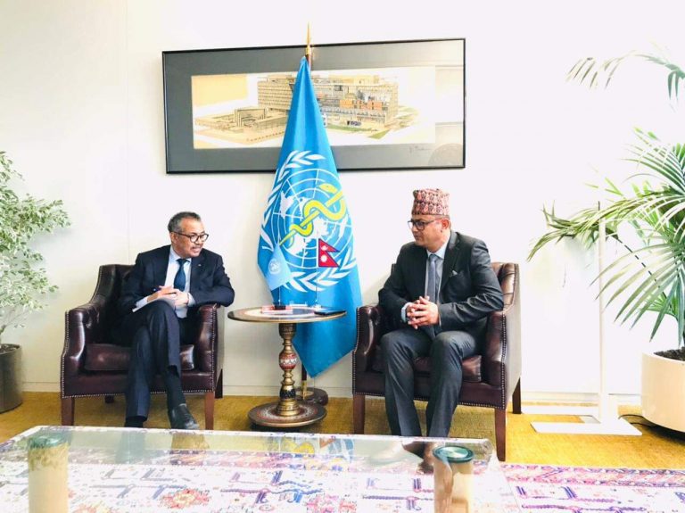 भेटमा गोर्खा भूकम्प, हैजाको प्रकोप, कोभिडविरुद्धको खोप नेपालका लागि उपलब्ध गराउन विश्व स्वास्थ्य सङ्गठनले खेलेको भूमिकाको लागिसमेत मन्त्री गिरीले उहाँप्रति धन्यवाद व्यक्त गर्नुभयो ।