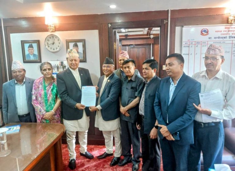 एमाले स्वास्थ्य तथा जनसंख्या विभाग प्रमुख एवं पूर्व स्वास्थ्य तथा जनसंख्या मन्त्री कृष्णगोपाल श्रेष्ठ नेतृत्वको विभागका सदस्यहरुको टोलीले मंगलबार मन्त्री बस्नेतलाई मन्त्रालयमै भेटेर ज्ञापन पत्र बुझाएको हो ।