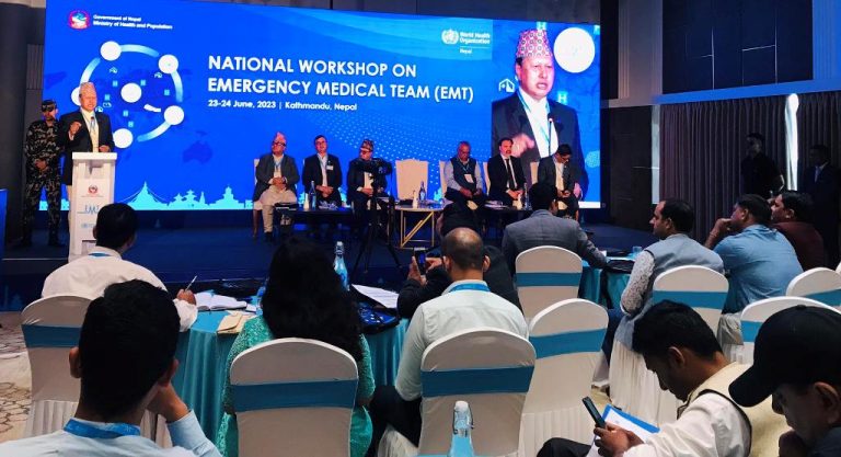 गुणस्तर मापन तथा अनुगमन महाशाखा प्रमुख डा. मदन उपाध्यायले आकस्मिक चिकित्सकीय समूह ‘इएमटी’ लाई कार्यान्वयनको चरणमा लैजान कार्यशालाको आयोजना गरिएको जनाउँदै पूर्वतयारीका कार्यलाई समेत लिएर दुई दिने छलफल गरिने बताउनुभयो। रासस