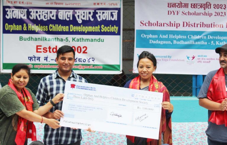 जनस्वास्थ्य सरोकार, काठमाडौं । मुलुकको स्वास्थ्य र शिक्षा सेवाका क्षेत्रमा क्रियाशील धनयोगा फाउन्डेसन नेपालले बूढानीलकण्ठ नगरपालिका–५ स्थित अनाथ असहाय बालसुधार समाजमा आश्रित १० बालबालिकालाई एक वर्षका लागि छात्रवृत्ति सहायता स्वरूप तीन लाख रूपैयाँ प्रदान गरेको छ ।