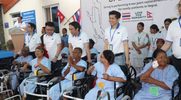 घुँडा प्रत्यारोपणका लागि वरिष्ठ हाडजोर्नी तथा नसा रोग विशेषज्ञ र शल्यक्रिया चिकित्सक १६ जनासहित ४५ जनाको टोली थाइल्याण्डबाट आएको थियो । ‘मानवताका लागि प्रेम’ नाराका साथ स्थापित थाइल्याण्डको सिरीराज अस्पताल एक सय ३५ वर्ष पुरानो हो । सिरीराज अस्पतालका प्रा. डा. किरातीको नेतृत्वमा चिकित्सक र स्वास्थ्यकर्मीको टोलीले अत्याधुनिक प्रविधिमार्फत घुँडाको प्रत्यारोपण गरेका हुन् ।