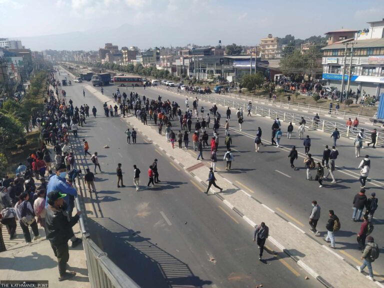 बालकुमारीमा मन्त्री प्रकाश ज्वालाको सवारीसाधनमा आगजनीपछि सातदोबाटोमा आन्दोलनकारीहरूले सवारीसाधन बन्द गराउँदै हिँडेका थिए । सबैले भाषा परीक्षामा सहभागी हुनु पाउनुपर्ने मागसहित शुक्रवार केही युवाहरूले प्रदर्शन गरेका थिए। त्यस क्रममा प्रदर्शनकारी र प्रहरीबीच झडप भएको बताइएको छ।