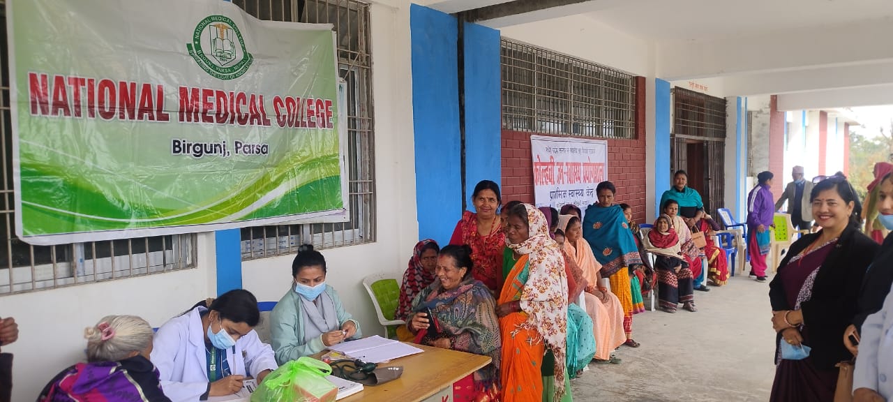 नेशनल मेडिकल कलेजकी अस्पताल निर्देशक डा. इशर्त जहान अन्सारीका अनुसार सामाजिक उत्तरदायित्व अन्तरगत कलेजले समुदायमा केन्द्रीत स्वास्थ्य शिविर सञ्चालन गरेको हो । शिविरमा १५ सय जनाको इसिजी र ११ सयको इको गरिएको थियो ।