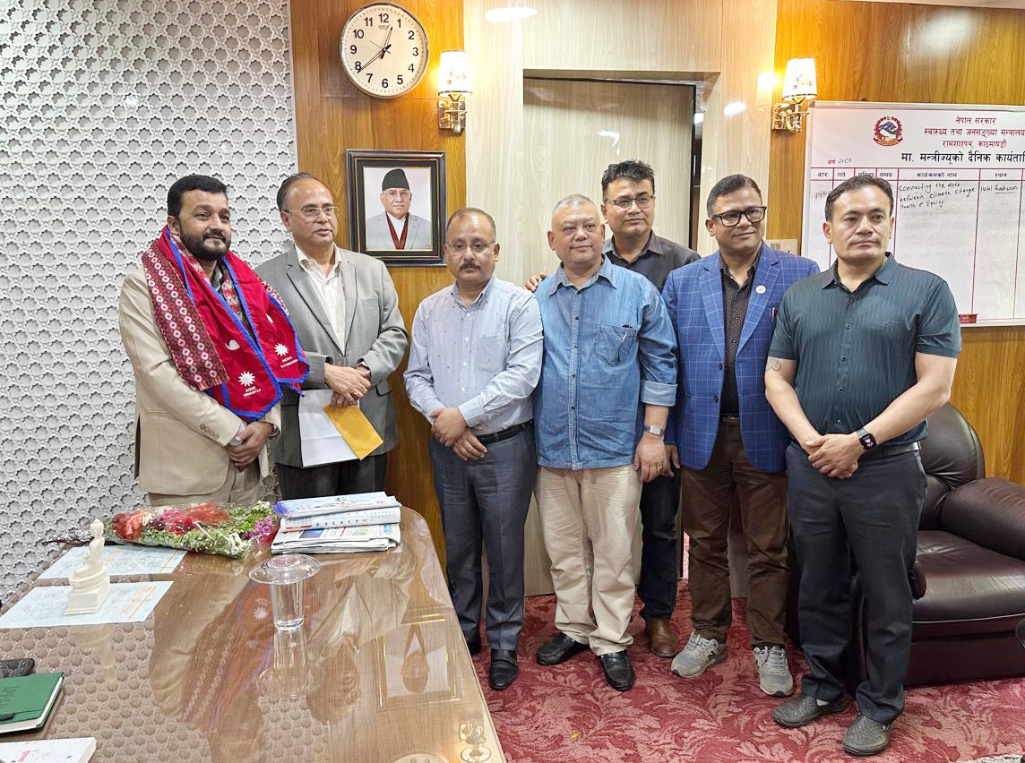 नेपाल औषधि व्यवसायी संघ केन्द्रिय कार्यालय, वागमती प्रदेश र काठमाडौं जिल्ला शाखाले संयुक्त रुपमा स्वास्थ्य तथा जनसंख्या मन्त्रालयमा पुगी मन्त्री यादवलाई बधाइ एवं सफल कार्यकालको शुभकामना व्यक्त गरेको हो । सो अवसरमा नेपाल औषधि व्यवसायी संघ केन्द्रिय अध्यक्ष प्रकाश कुमार खण्डेलवाल, केन्द्रिय महासचिव श्रीधर खनाल, केन्द्रिीय कोषाध्यक्ष सम्राट मान जोशी, बागमती प्रदेश अध्यक्ष धुब्र नारायण श्रेष्ठ, काठमाडौं जिल्ला शाखा अध्यक्ष शंकर महर्जन, महासचिव शुभमान श्रेष्ठलगायतको उपस्थिति रहेको थियो ।