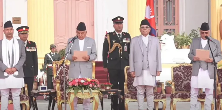 राष्ट्रपति रामचन्द्र पौडेलले नवनियुक्त प्रधानमन्त्री केपी शर्मा ओलीसहित दुई उपप्रधानमन्त्री र १९ मन्त्रीहरुलाई शीतल निवासमा आयोजित कार्यक्रममा पद तथा गोपनियताको शपथ खुवाउनुभएको हो ।