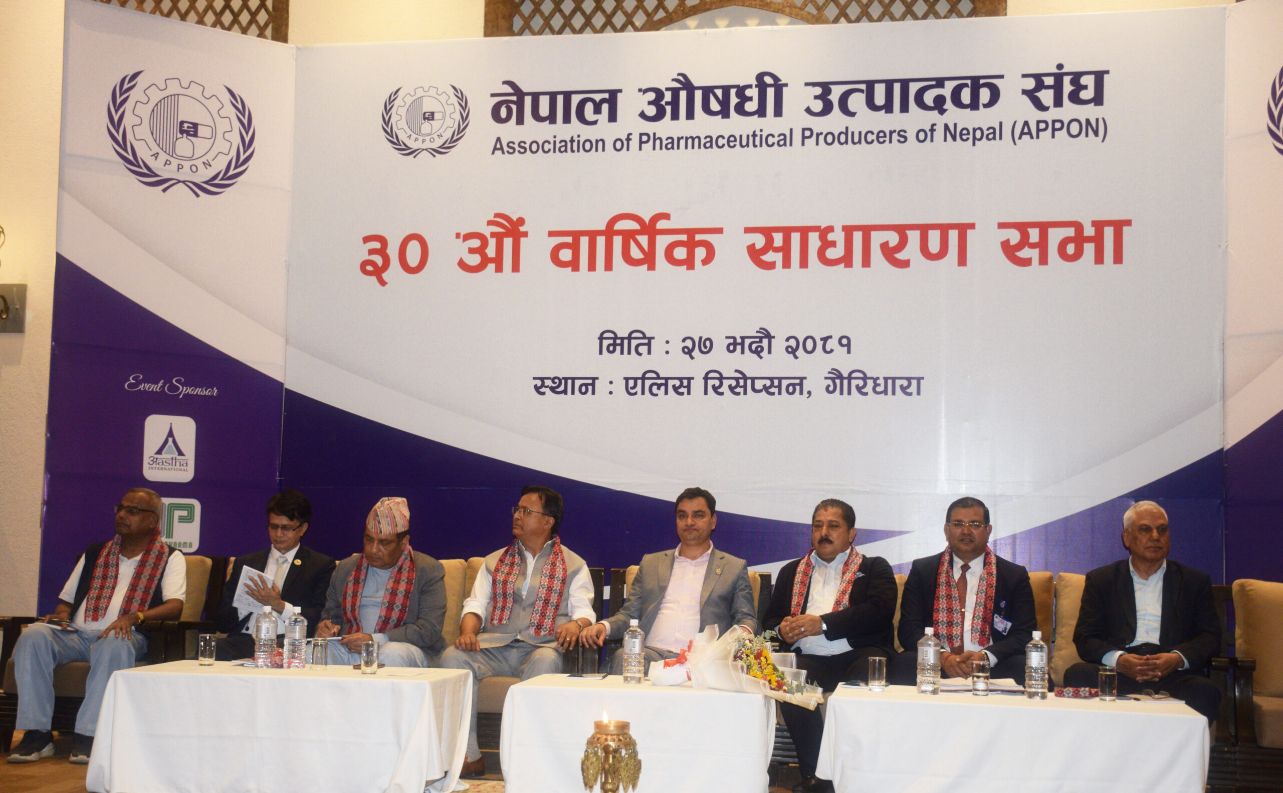 नेपाल मेडिकल काउन्सिलका अध्यक्ष प्रा.डा.चोपलाल भुसालले ३० औं वार्षिक साधारण सभाको शुभकामना दिँदै नेपाली औषधि उद्योगहरुले पुर्याएको योगदानको प्रशंसा गर्नुभयो ।