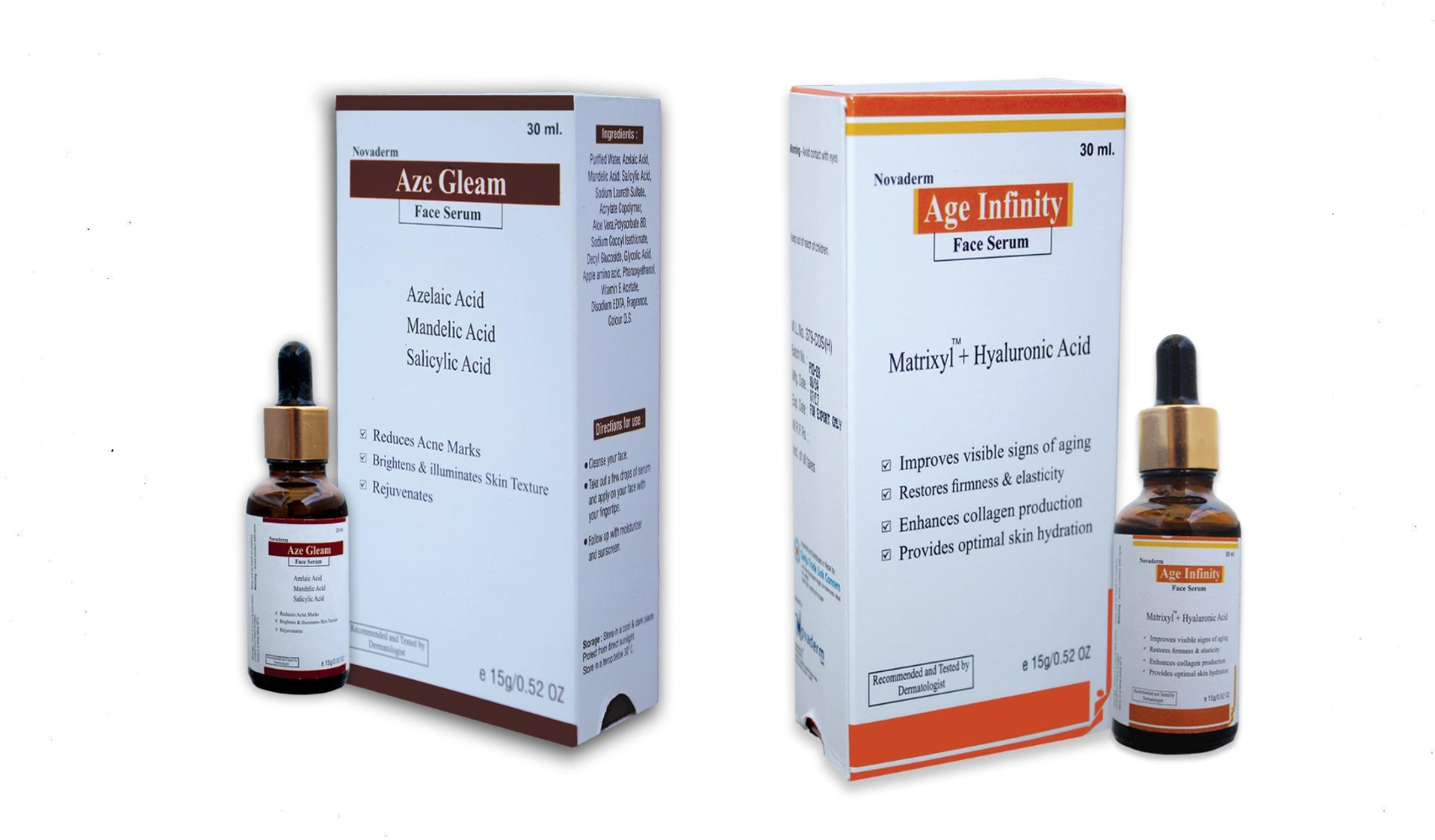 ‘एज ग्लिम’ एक्ने ट्रिटमेन्ट, हाइपर पिग्मेन्टेसन र स्किनको कम्प्लेक्स राम्रो बनाउन महत्वपूर्ण मानिन्छ । यसमा एजेलिक एसिड ५ प्रतिशत, म्यान्डेलिक एसिड ४ प्रतिशत र स्यालिसाइलिक एसिड २ प्रतिशत रहेको छ । यसको मूल्य प्रति फाइल २ हजार ४ सय पर्छ ।