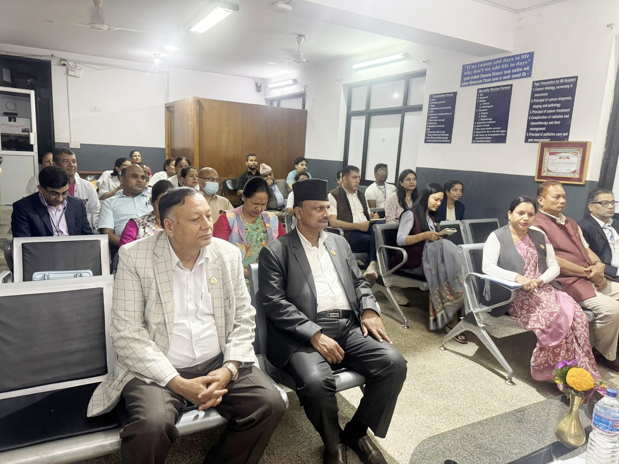 भ्रमणका क्रममा अस्पतालका कार्यकारी निर्देशक डा. उज्जल चालिसेले समितिका माननीय सदस्यहरूलाई अस्पतालको हालको सेवा अवस्था, उपलब्ध जनशक्ति, उपचारका आधुनिक प्रविधिहरू, दैनिक आउने बिरामीको चाप, बजेटको अवस्थालगायतका विषयमा विस्तृत जानकारी गराउनुभएको थियो। डा. चालिसेले विशेषगरी क्यान्सर जस्ता जटिल रोगको उपचारमा सरकारी सहयोग अपरिहार्य भएको र यस अस्पतालमा अत्याधुनिक सेवा विस्तारका लागि नीति तहबाट विशेष ध्यान आवश्यक रहेको बताउनुभयो ।